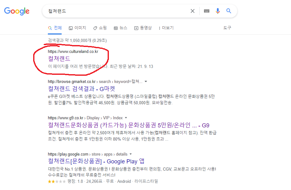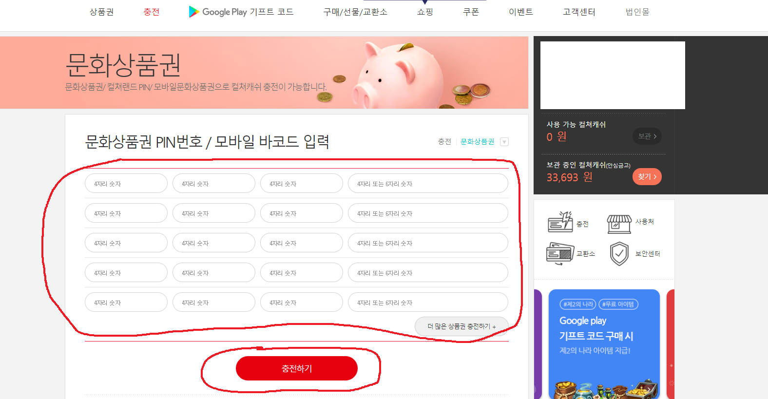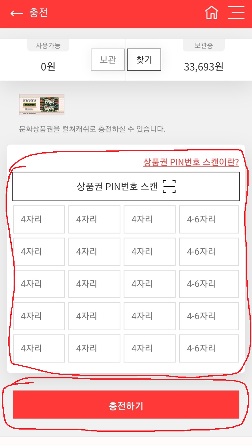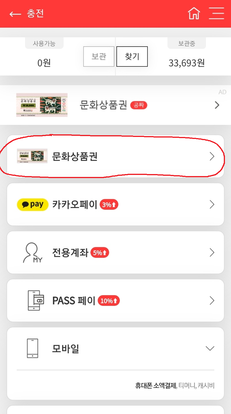 되어 있으면 컬쳐랜드 어플로 충전하는게