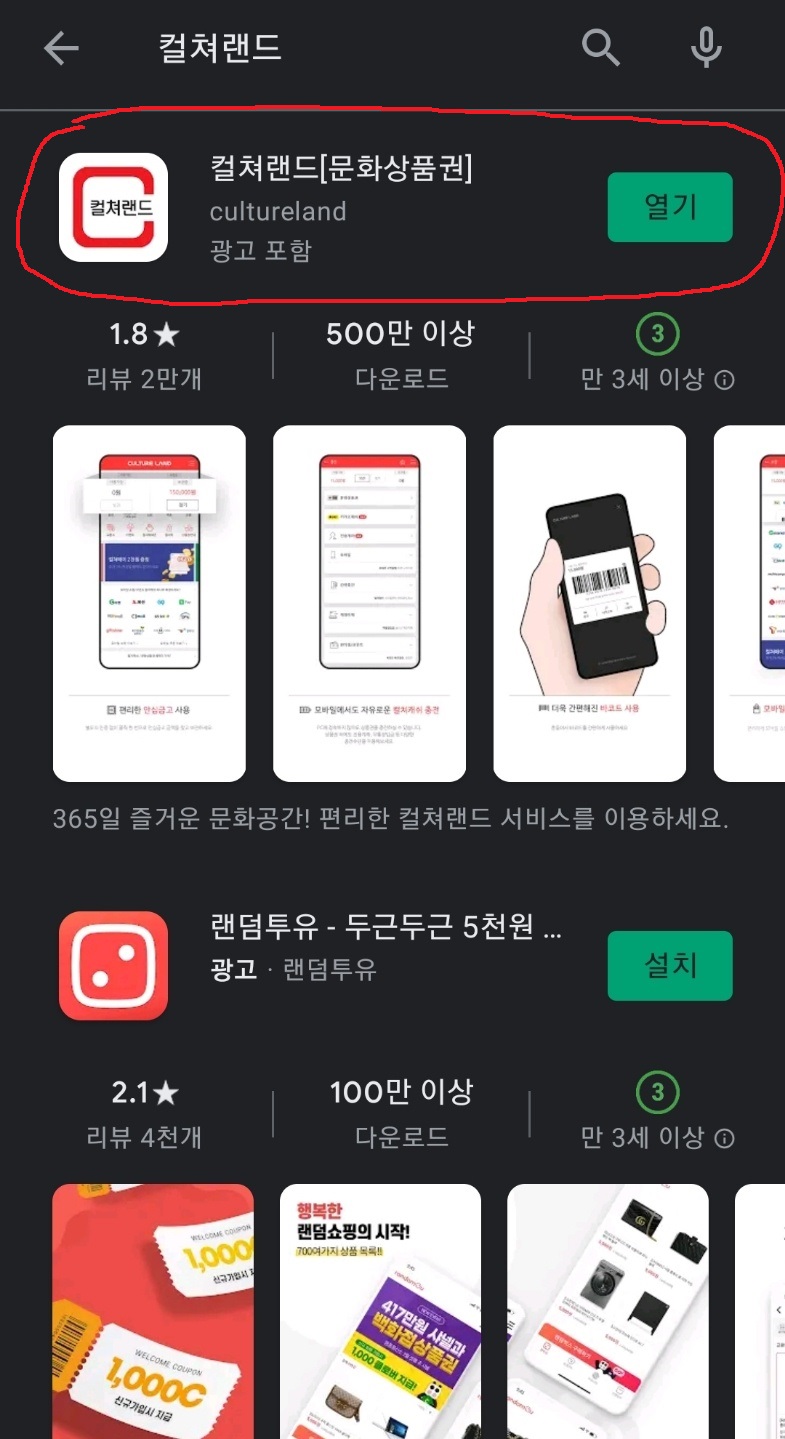 컬쳐랜드 어플을 설치 후 실행 합니다.