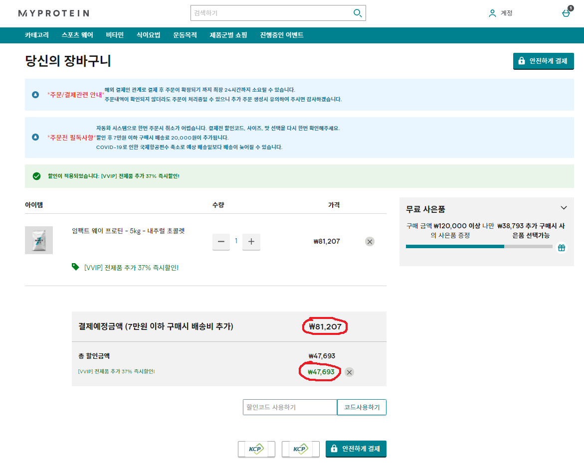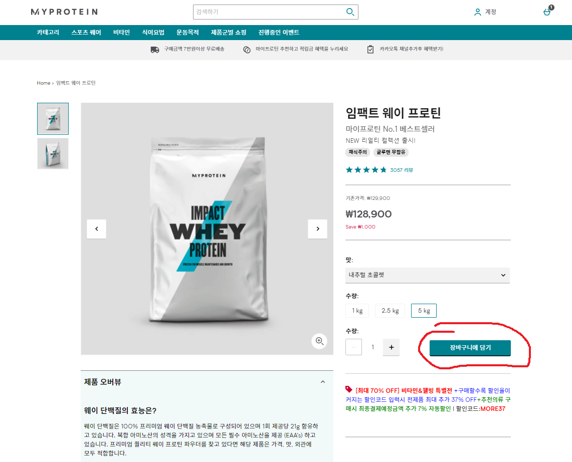 저는 이 프로틴 하나만 구매해 보겠습니다.